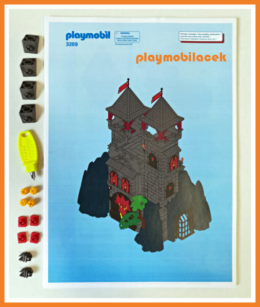 Hrad bude zaslán dobře zabalený, v rozloženém stavu, součástí prodeje je i barevná kopie návodu na sestavení (formát A4, 20 stran). Doba nutná k sestavení činí 20-40 minut. Originální karton není součástí prodeje.