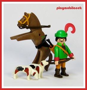 neodolatelný lučišník se svým koněm a dvěma loveckými psy