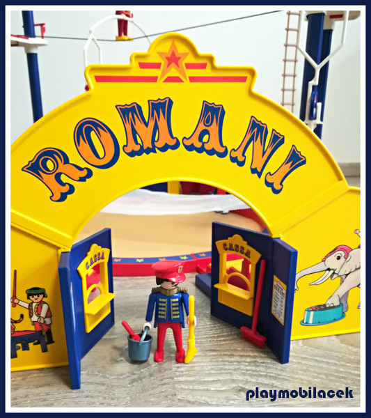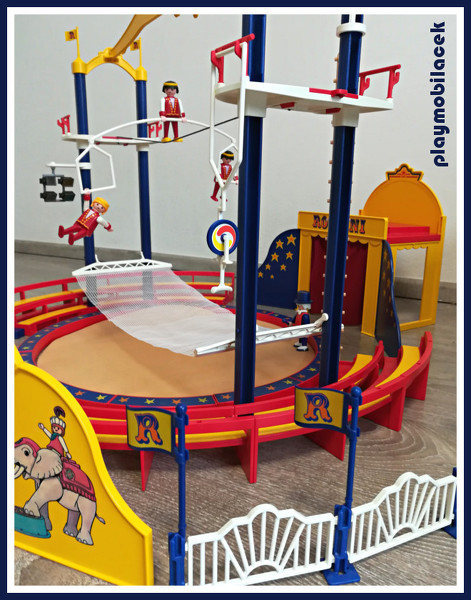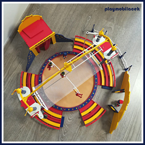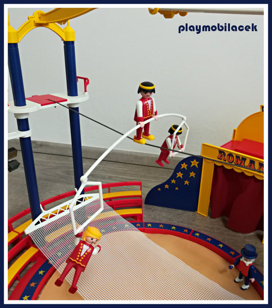 Set obsahuje pět playmobiláčků, ředitele cirkusu v červené vestičce, údržbáře a tři akrobaty. Akrobaté mohou opravdu chodit po laně, jezdit po něm na kole a ve výšce předvádět nejrůznější nebezpečné kousky třeba i na vysoko zavěšené houpačce. Před tvrdým pádem je uchrání záchranná síť. Lano i síť se dají odstranit, aby se v manéži uvolnilo místo dalším číslům pestrého vystoupení. Hlediště pojme spoustu diváků (min. 35 dospělých). Své místo zde najde i cirkusová kapela.