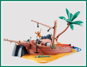 Vrak obchodní nebo pirátské lodi uvízlý na mělčině.
