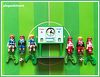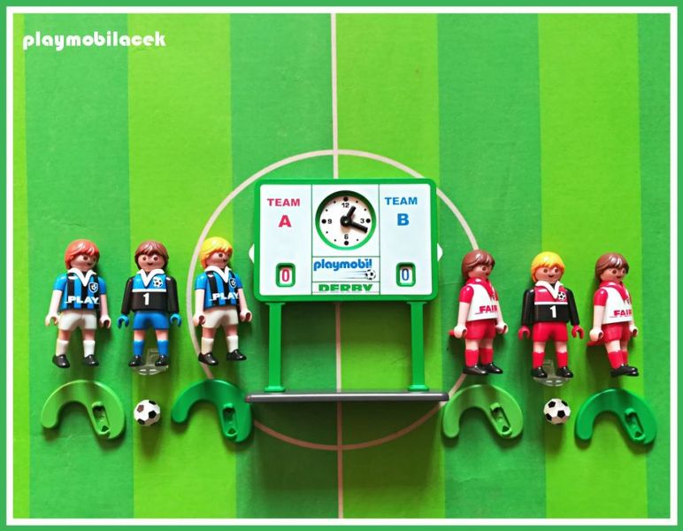 fotbalisté opravdu kopou jednou nohou do míče a brankáři se připevní na tyčku, aby mohli hájit svou bránu, tabule s hodinamy a skóre plně funkční