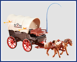 vůz westernových osadníků napadený zápalnými šípy nespokojených indiánů