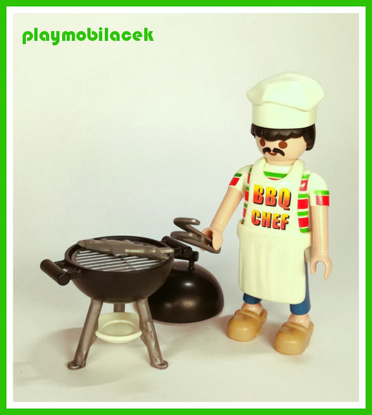 playmobiláček z 5203-06 oblékl zástěru tatínka z 4649 a dal se do grilování