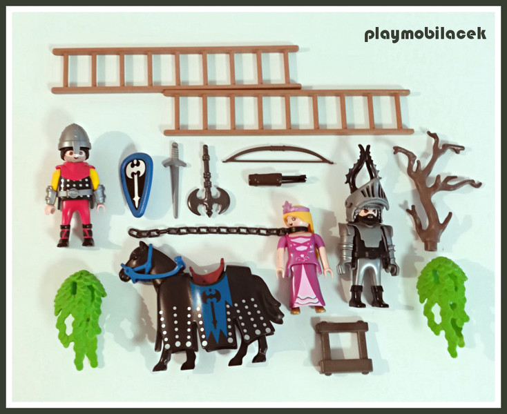 Hradní posádku tvoří loupeživý baron na svém koni (playmobiláček z 3137, kůň a štít z 3315), jeho panoš, lučišník (podobný setu 3319) a vězněná princezna (z 5146).