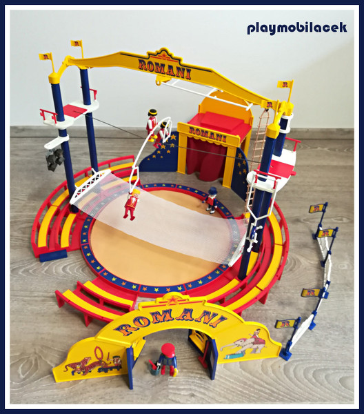 Set obsahuje pět playmobiláčků, ředitele cirkusu v červené vestičce, údržbáře a tři akrobaty. Akrobaté mohou opravdu chodit po laně, jezdit po něm na kole a ve výšce předvádět nejrůznější nebezpečné kousky třeba i na vysoko zavěšené houpačce. Před tvrdým pádem je uchrání záchranná síť. Lano i síť se dají odstranit, aby se v manéži uvolnilo místo dalším číslům pestrého vystoupení. Hlediště pojme spoustu diváků (min. 35 dospělých). Své místo zde najde i cirkusová kapela.