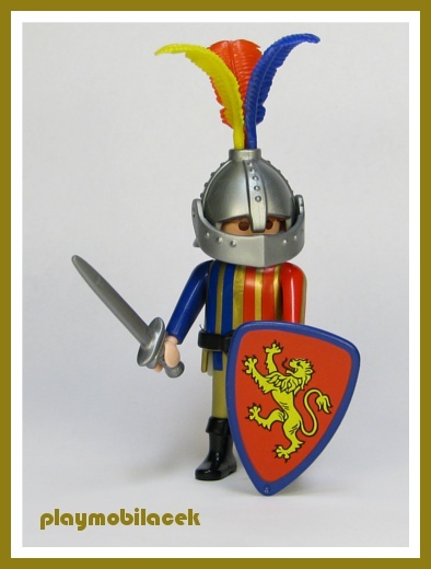 parádní rytíř s náročným chocholem a se štítem podobným českému lvu